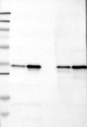 - Western blot analysis of antibody specificity using a routine panel composed of IgG/HSA-depleted human plasma and protein lysates from selected human tissues and cell lines.