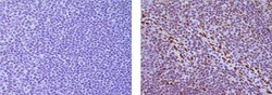 - Immunohistochemistry of formalin-fixed paraffin embedded human tonsil tissue using 10 µg/mL Mouse IgG2a K Isotype Control Purified (left) or 10 µg/mL Anti-ZEB1 Purified (right) followed by Anti-Mouse Biotin, Streptavidin-HRP, and DAB visualization.Nuclei are counterstained with hematoxylin.