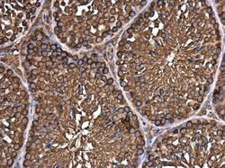 - eIF3H/EIF3S3 antibody [GT35512] detects eIF3H/EIF3S3 protein at cytoplasm in mouse testis by immunohistochemical analysis. Sample: Paraffin-embedded mouse testis. EIF3H/EIF3S3 antibody [GT35512] (Product # MA5-27798) diluted at 1:200. Antigen Retrieval: Citrate buffer, pH 6.0, 15 min.