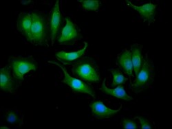 - Immunofluorescent analysis of Carbonic Anhydrase I in A549 cells using a Carbonic Anhydrase I polyclonal antibody (Product # PA5-97527) at a dilution of 1:100. Alexa Fluor 488-congugated Goat Anti-Rabbit IgG(H+L) secondary antibody was used.