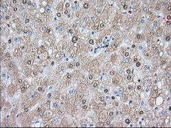 - IHC of paraffin-embedded Human liver tissue using anti-ACAT2 mouse monoclonal antibody. (Dilution 1:50).
