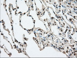- IHC of paraffin-embedded Human lung tissue using anti-ACAT2 mouse monoclonal antibody. (Dilution 1:50).