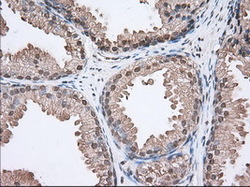 - IHC of paraffin-embedded Human prostate tissue using anti-ACAT2 mouse monoclonal antibody. (Dilution 1:50).