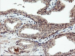 - Immunohistochemistry was performed on paraffin-embedded carcinoma of human prostate tissue. To expose target proteins, 10mM citric buffer, pH6.0, 100°C for 10min was used. Following antigen retrieval, tissues were probed with a AGPAT5 monoclonal antibody (Product # MA5-25830).