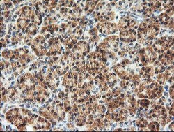 - Immunohistochemistry was performed on paraffin-embedded human pancreas tissue. To expose target proteins, 10mM citric buffer, pH6.0, 100°C for 10min was used. Following antigen retrieval, tissues were probed with a AGPAT5 monoclonal antibody (Product # MA5-25830).