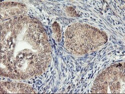 - Immunohistochemistry was performed on paraffin-embedded adenocarcinoma of human endometrium tissue. To expose target proteins, 10mM citric buffer, pH6.0, 100°C for 10min was used. Following antigen retrieval, tissues were probed with a AGPAT5 monoclonal antibody (Product # MA5-25830).