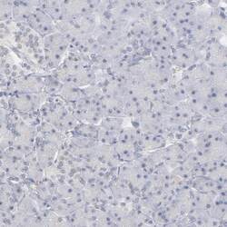 - Immunohistochemical staining of PNMA1 in human pancreas using PNMA1 Polyclonal Antibody (Product # PA5-52003) shows low expression as expected.