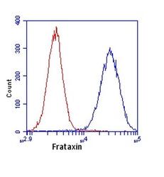 - Flow cytometric analysis of FXN in HL60 cells using an FXN monoclonal antibody (Product # 45-6300) at 1 µg/mL is depicted by the blue line. The red line indicates an isotype control antibody.