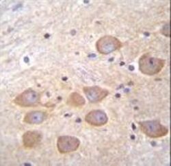 - PCDH1 Antibody immunohistochemistry of formalin-fixed and paraffin-embedded human brain tissue followed by peroxidase-conjugated secondary antibody and DAB staining.