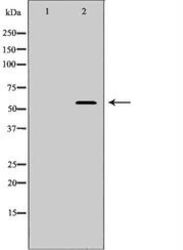 - Western blot analysis of extracts of 293 cells using SPAM1 antibody. Lane 1 was treated with the antigen-specific peptide.