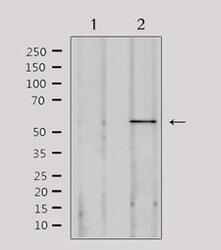 - Western blot analysis of extracts of PC-3 using SPAM antibody. The lane on the left is treated with the antigen-specific peptide.