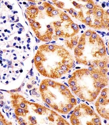 - Antibody staining TST in human kidney tissue sections by Immunohistochemistry (IHC-P - paraformaldehyde-fixed, paraffin-embedded sections). Tissue was fixed with formaldehyde and blocked with 3% BSA for 0. 5 hour at room temperature; antigen retrieval was by heat mediation with a citrate buffer (pH 6). Samples were incubated with primary antibody (1:25) for 1 hours at 37°C. A undiluted biotinylated goat polyvalent antibody was used as the secondary antibody.