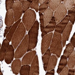 - Immunohistochemical staining of REXO2 in human skeletal muscle using REXO2 Polyclonal Antibody (Product # PA5-58395) shows low expression as expected.