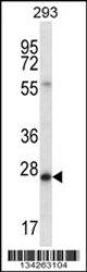 - BCAS2 Antibody (N-term) (Cat. #AP14509a) western blot analysis in 293 cell line lysates (35ug/lane).This demonstrates the BCAS2 antibody detected the BCAS2 protein (arrow).