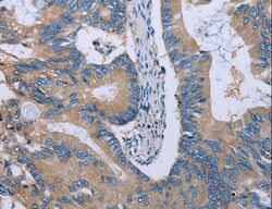 - Immunohistochemistry of paraffin-embedded Human colon cancer using HYAL3 Polyclonal Antibody at dilution of 1:40.