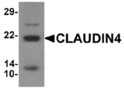 - Western blot analysis of CLAUDIN4 in human colon tissue lysate with CLAUDIN4 antibody Cat.-No AP55480PU-N at 1 μg/ml.