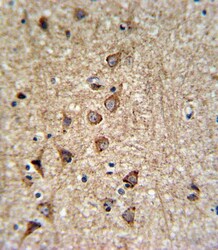 - Immunohistochemistry analysis of SLC25A37 in formalin fixed and paraffin embedded brain tissue. Samples were incubated with SLC25A37 polyclonal antibody (Product # PA5-26720) followed by peroxidase conjugation of the secondary antibody and DAB staining. This data demonstrates the use of this antibody for immunohistochemistry. Clinical relevance has not been evaluated.