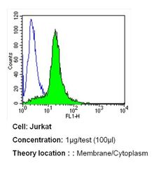 - Flow cytometry analysis of PMCA ATPase in Jurkat cells (green) compared to an isotype control (blue). Cells were harvested, adjusted to a concentration of 1-5x10^6 cells/mL, fixed with 2% paraformaldehyde and washed with PBS. Cells were blocked with a 2% solution of BSA-PBS for 30 min at room temperature and incubated with a PMCA ATPase monoclonal antibody (Product # MA3-914) at a dilution of 1 µg/test for 40 min at room temperature. Cells were then incubated for 40 min at room temperature in the dark using a Dylight 488-conjugated secondary antibody and re-suspended in PBS for FACS analysis.