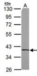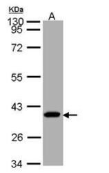 - Sample (30 ug of whole cell lysate). A: A431. 10% SDS PAGE. SUCLG1 / GALPHA antibody diluted at 1:1000
