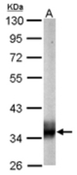 - Sample (20 ug of whole cell lysate). A: mouse brain. 10% SDS PAGE. SUCLG1 / GALPHA antibody diluted at 1:10000.