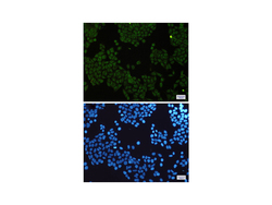 - Recombinant IKK Gamma/NEMO Antibody (Ab109740) - IF/ICC Immunocytochemistry IKK Gamma/NEMO (green) in HeLa using Recombinant IKK Gamma/NEMO Antibody (Ab109740), and cells were counterstained with DAPI (blue).