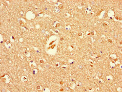 - Immunohistochemistry of paraffin-embedded human brain tissue using UNC79 Antibody at dilution of 1:100