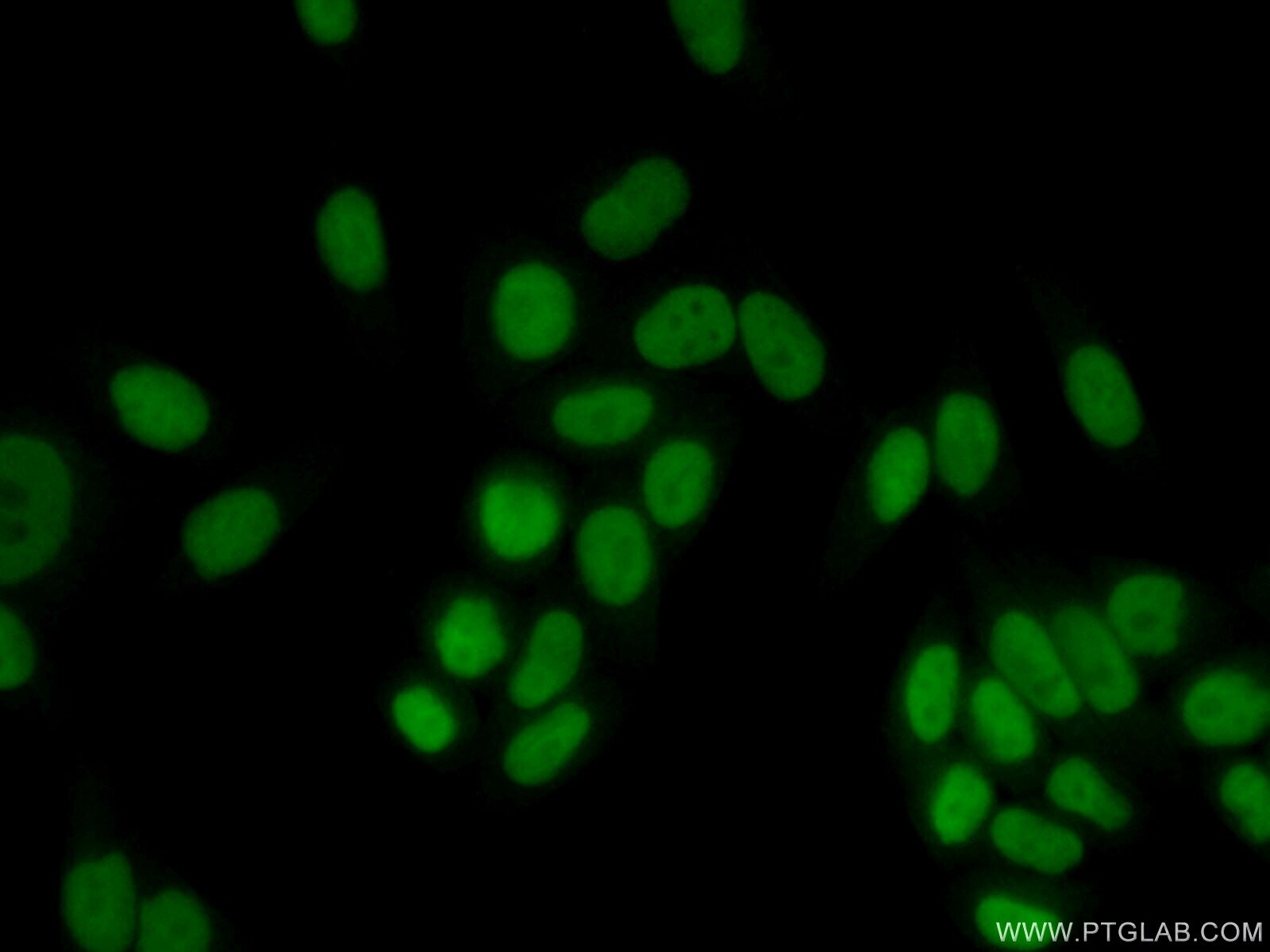 - Immunofluorescent analysis of ( 4% PFA ) fixed HeLa cells using 11726-2-AP (RAD1 antibody) at dilution of 1:50 and Alexa Fluor 488-conjugated AffiniPure Goat Anti-Rabbit IGG (H+L).