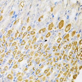 - Immunohistochemistry of paraffin-embedded human stomach tissue.