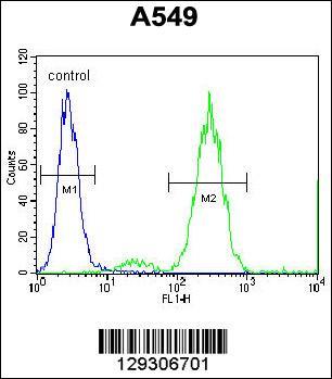 - EDN1 Antibody (Center) (Cat. #AP11389c) flow cytometric analysis of A549 cells (right histogram) compared to a negative control cell (left histogram).FITC-conjugated goat-anti-rabbit secondary antibodies were used for the analysis.