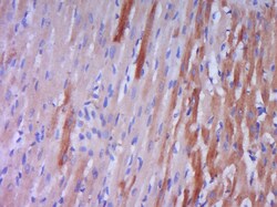 - Paraformaldehyde-fixed, paraffin embedded rat heart muscle; Antigen retrieval by boiling in sodium citrate buffer (pH6.0) for 15min; Block endogenous peroxidase by 3% hydrogen peroxide for 20 minutes; Blocking buffer (normal goat serum) at 37°C for 30min; Antibody incubation with Big endothelin-1 Polyclonal Antibody, Unconjugated (bs-0188R) at 1:400 overnight at 4°C, DAB staining.
