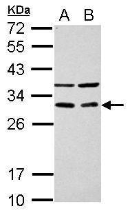 - Sample (30 ug of whole cell lysate) A: PC-3 B: U87-MG 12% SDS PAGE GTX117824 diluted at 1:1000