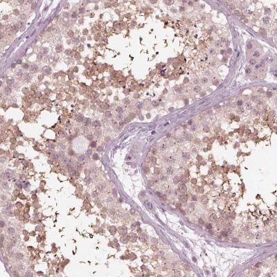 - Immunohistochemistry-Paraffin: FAM154A Antibody [NBP1-86710] - Staining of human testis shows high expression.
