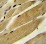 - RPH3AL Antibody immunohistochemistry of formalin-fixed and paraffin-embedded human skeletal muscle followed by peroxidase-conjugated secondary antibody and DAB staining.