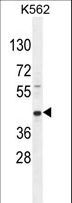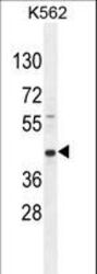 - RPH3AL Antibody western blot of K562 cell line lysates (35 ug/lane). The RPH3AL antibody detected the RPH3AL protein (arrow).