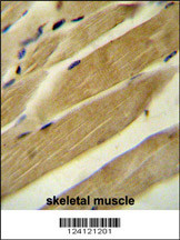 - RPH3AL Antibody (C-term) (Cat. #AP10741b) immunohistochemistry analysis in formalin fixed and paraffin embedded human skeletal muscle followed by peroxidase conjugation of the secondary antibody and DAB staining. This data demonstrates the use of the RPH3AL Antibody (C-term) for immunohistochemistry. Clinical relevance has not been evaluated.