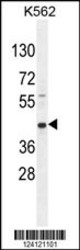 - RPH3AL Antibody (C-term) (Cat. #AP10741b) western blot analysis in K562 cell line lysates (35ug/lane).This demonstrates the RPH3AL antibody detected the RPH3AL protein (arrow).