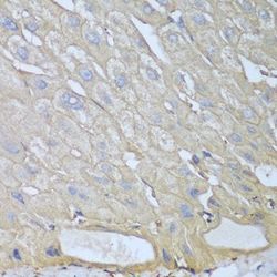 - Immunohistochemistry of paraffin-embedded human liver using RPH3AL antibody at dilution of 1:100 (40x lens).