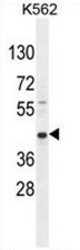 - RPH3AL Antibody (C-term) (Cat. #AP53705PU-N) western blot analysis in K562 cell line lysates (35µg/lane).This demonstrates the RPH3AL antibody detected the RPH3AL protein (arrow).