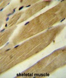 - RPH3A Antibody (C-term) (Cat. #AP53705PU-N) immunohistochemistry analysis in formalin fixed and paraffin embedded human skeletal muscle followed by peroxidase conjugation of the secondary antibody and DAB staining. This data demonstrates the use of the RPH3A Antibody (C-term) for immunohistochemistry. Clinical relevance has not been evaluated.