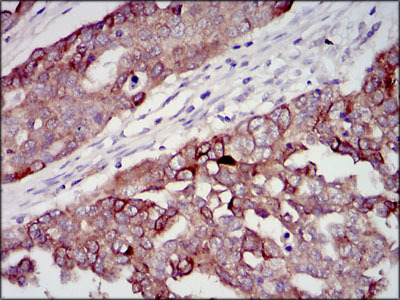 - IHC of paraffin-embedded ovarian cancer tissues using IGF2 mouse monoclonal antibody with DAB staining.