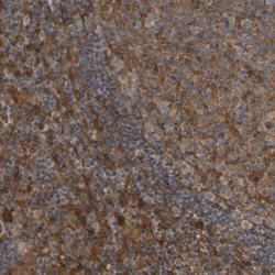 - Immunohistochemical staining of human lymph node shows cytoplasmic positivity in reaction center cells and lymphoid cells outside reaction centra.