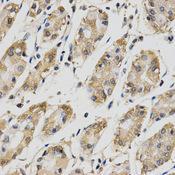 - Immunohistochemistry of paraffin-embedded human stomach using CDC34 antibody at dilution of 1:200 (x400 lens).