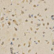 - Immunohistochemistry of paraffin-embedded mouse brain using CDC34 antibody at dilution of 1:200 (x400 lens).
