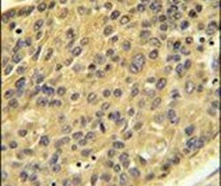 - Immunohistochemistry analysis in formalin-fixed, paraffin-embedded human hepatocarcinoma using a CTSH polyclonal antibody (Product # PA5-14269), followed by HRP-conjugated secondary antibody and DAB staining.