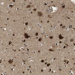 - Immunohistochemical staining of human cerebral cortex shows strong cytoplasmic as well as nuclear positivity in neuronal cells and glial cells.