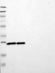 - Western blot analysis of antibody specificity using a routine panel composed of IgG/HSA-depleted human plasma and protein lysates from selected human tissues and cell lines.