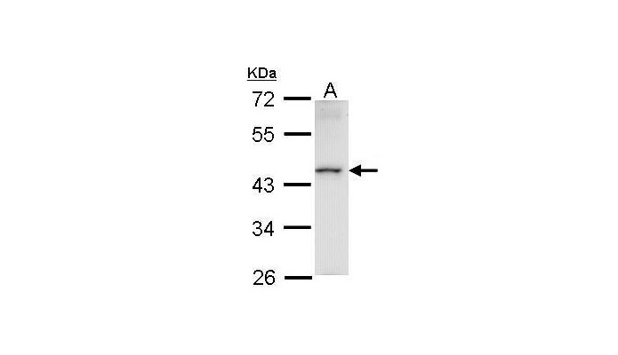 - Sample (30 ug of whole cell lysate) A: Raji 10% SDS PAGE OAGA00297 diluted at 1:1000