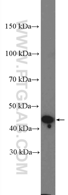 - MCF7 cells were subjected to SDS PAGE followed by western blot with 12557-1-AP (PRMT8 antibody) at dilution of 1:400 incubated at room temperature for 1.5 hours.