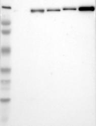 - Western blot analysis of antibody specificity using a routine panel composed of IgG/HSA-depleted human plasma and protein lysates from selected human tissues and cell lines.