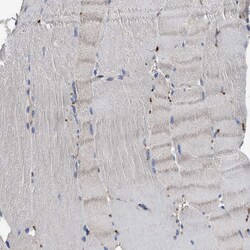 - Immunohistochemical analysis of YBEY in human skeletal muscle using YBEY Polyclonal Antibody (Product # PA5-53745) shows no positivity in myocytes as expected.